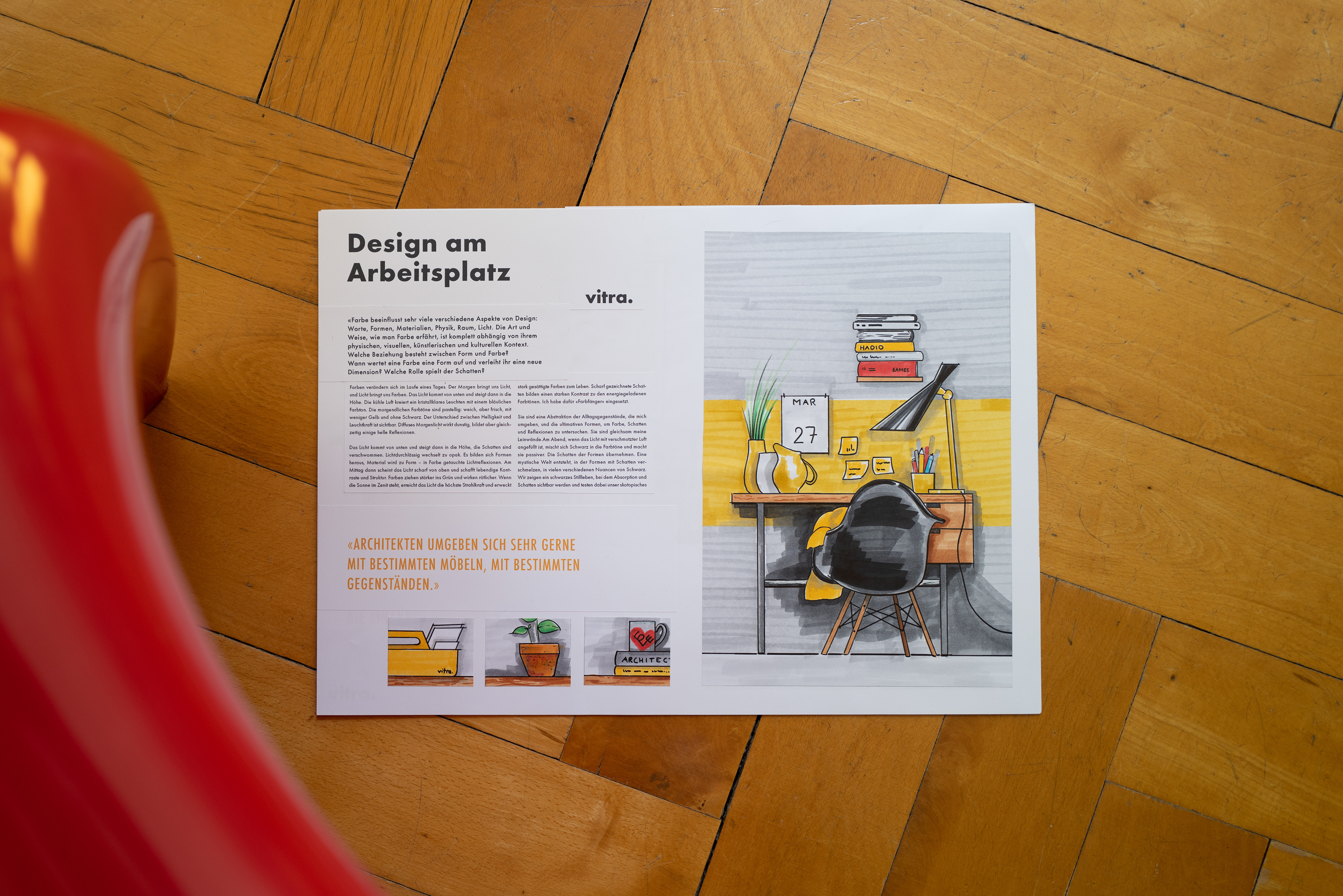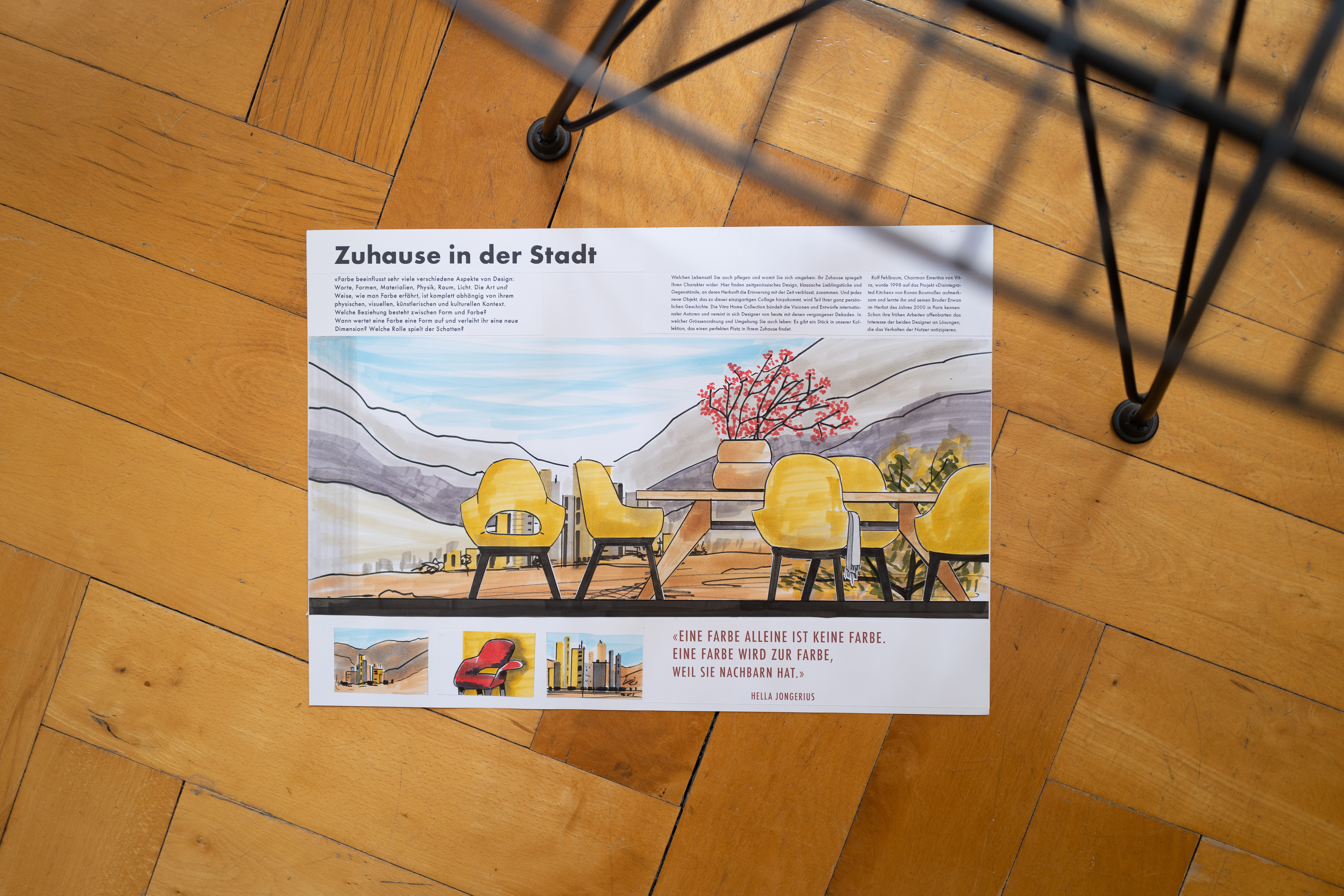 Um eine Idee zu visualisieren, ist es hilfreich diese schnell skizzieren zu können. Im Zuge einer Semesterarbeit ist dieses Konzept für eine Home-Story in einem Interior-Magazin entstanden. Hierfür wurden Layoutmarker verwendet.